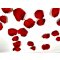 Pétales de rose en polyester, de couleur rouge passion, de dimensions légèrement variables: 5x5cm ou 4x4cm environ.