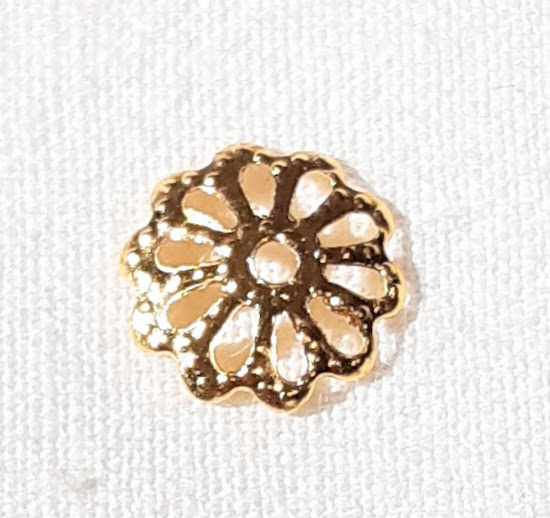 Apprêts bijoux: 20 coupelles légères métal doré 9mm, trou 1mm, épaisseur 1,2mm.